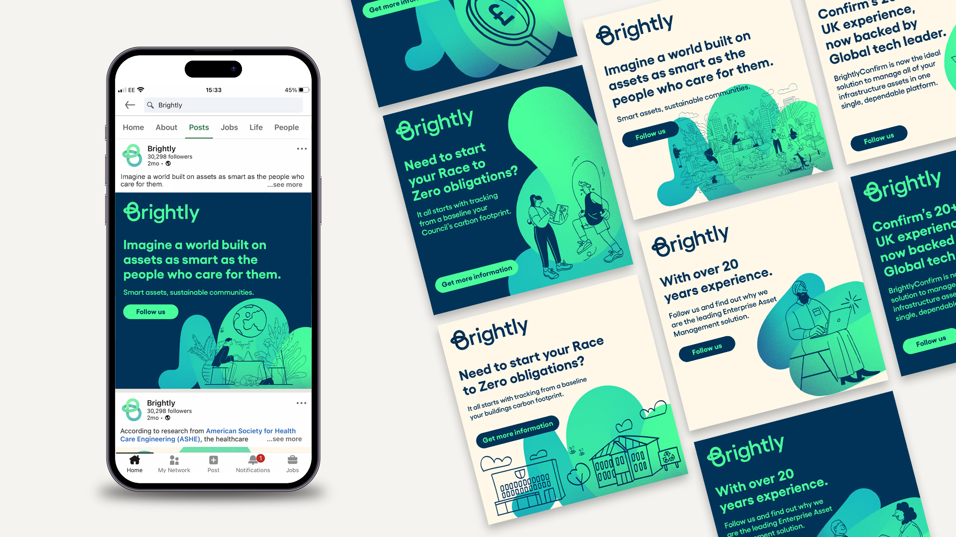 Designing social media creatives for Brightly digital campaigns. Brightly, a Siemens company, is the global leader in intelligent asset management solutions.